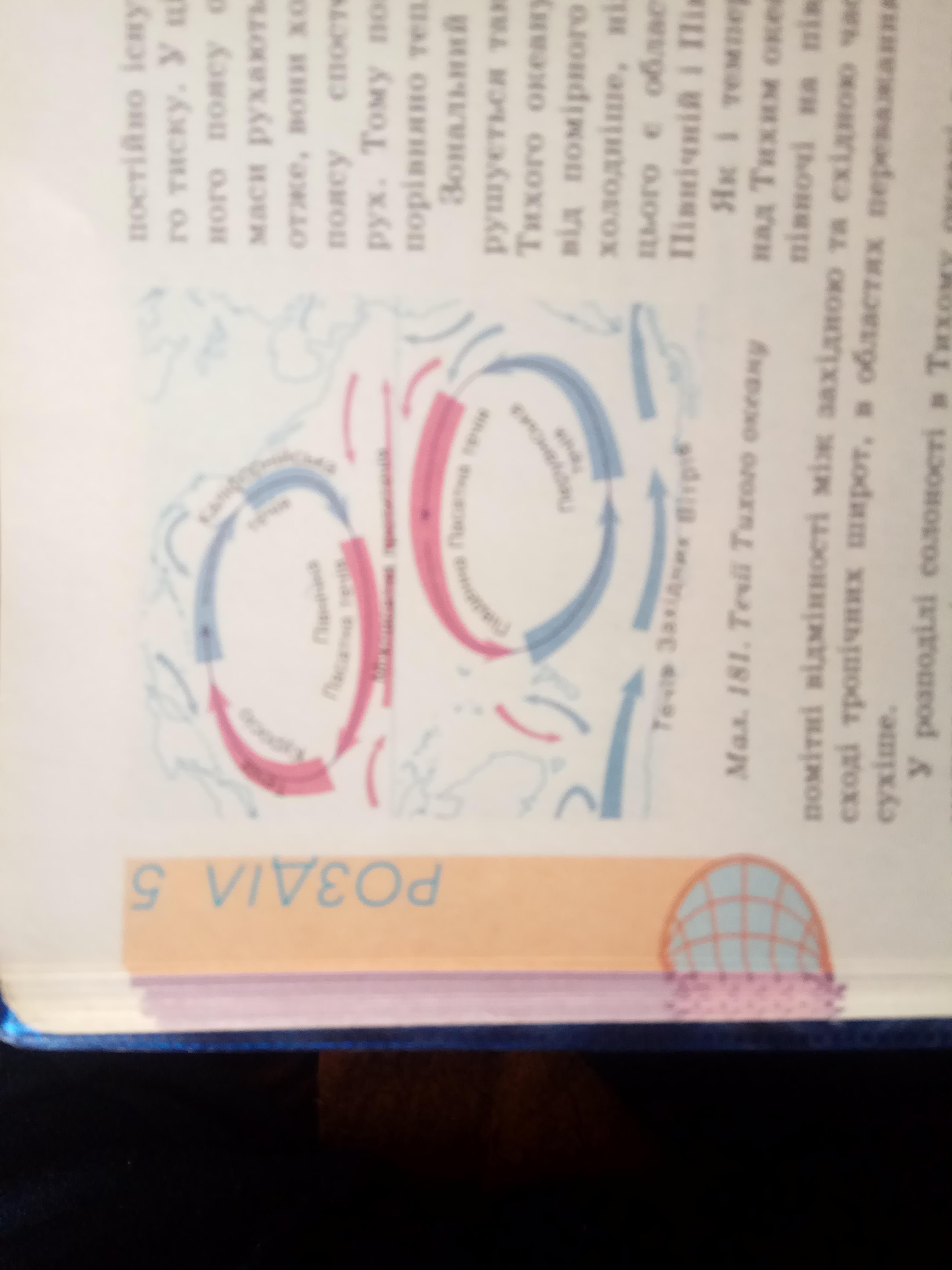 Поможіть будь ласка прошу!!!!!!! Зобразіть схематично основні системи течій,що утворються в Північній та Південній півкулях у Тихому океані.