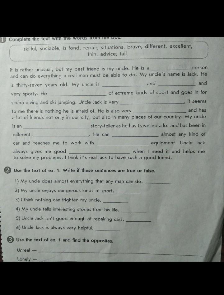 4)True, это подтверждает этот кусочек текста : My uncle is an excellent storyteller as he has travelled a lot and has been in different situations(Мой дядя отличный рассказчик, он много путешествовал и был в разных ситуациях)