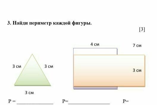 3) Прямоугольник: P=2(a+b) = 2(3+7) = 20см