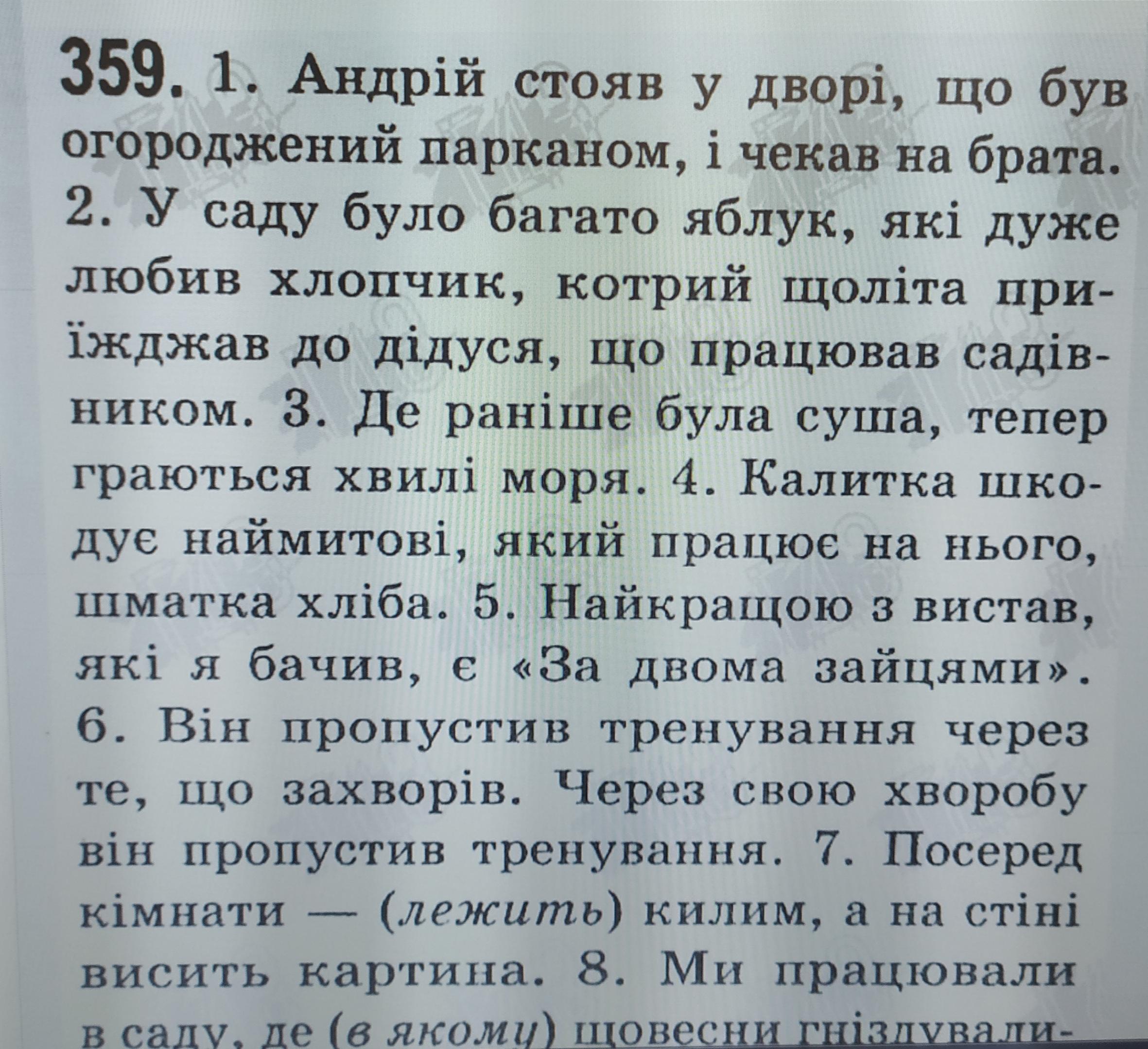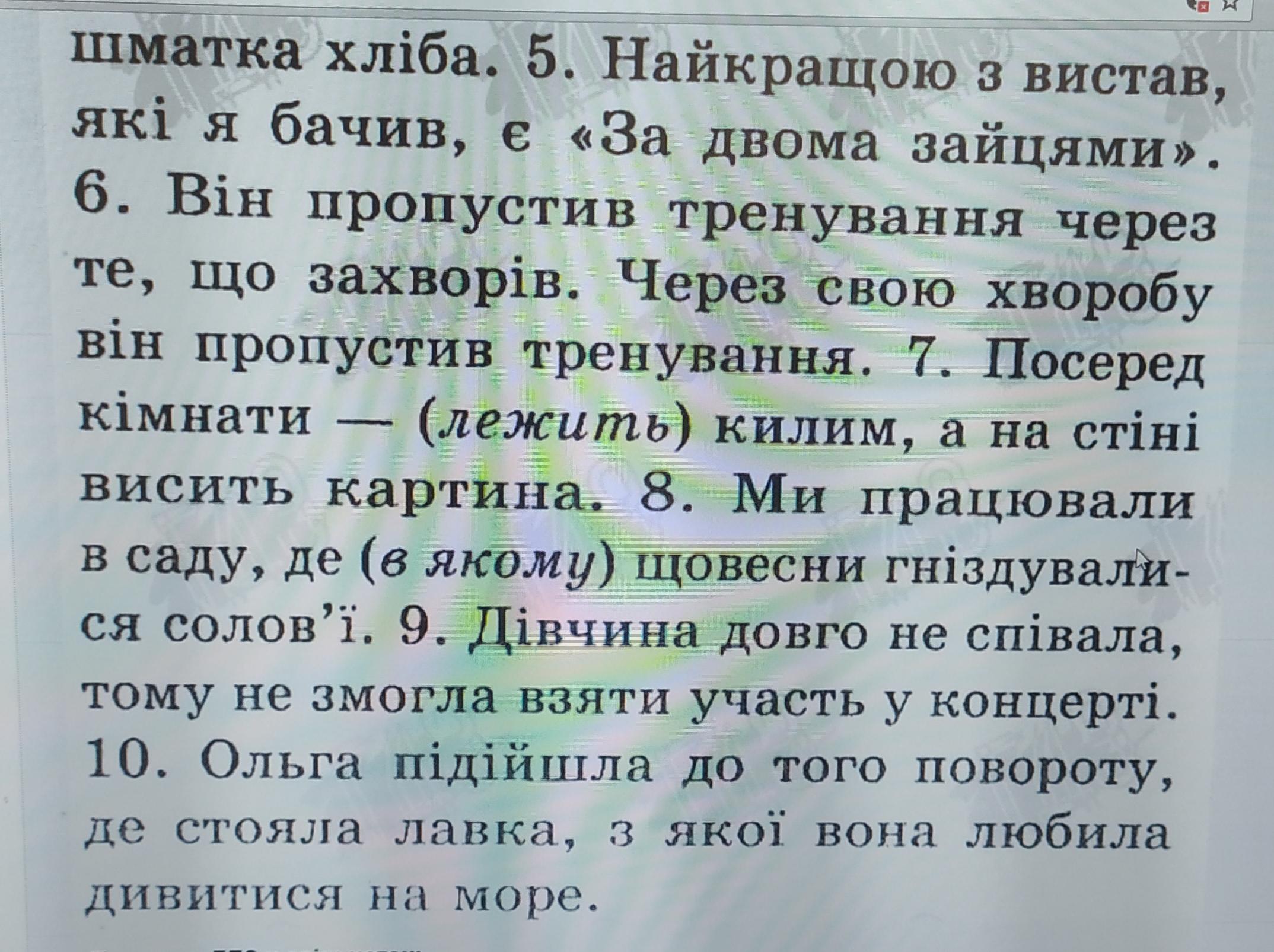зайцями». 6. За те, що він захворів, він пропустив тренування. 7. На