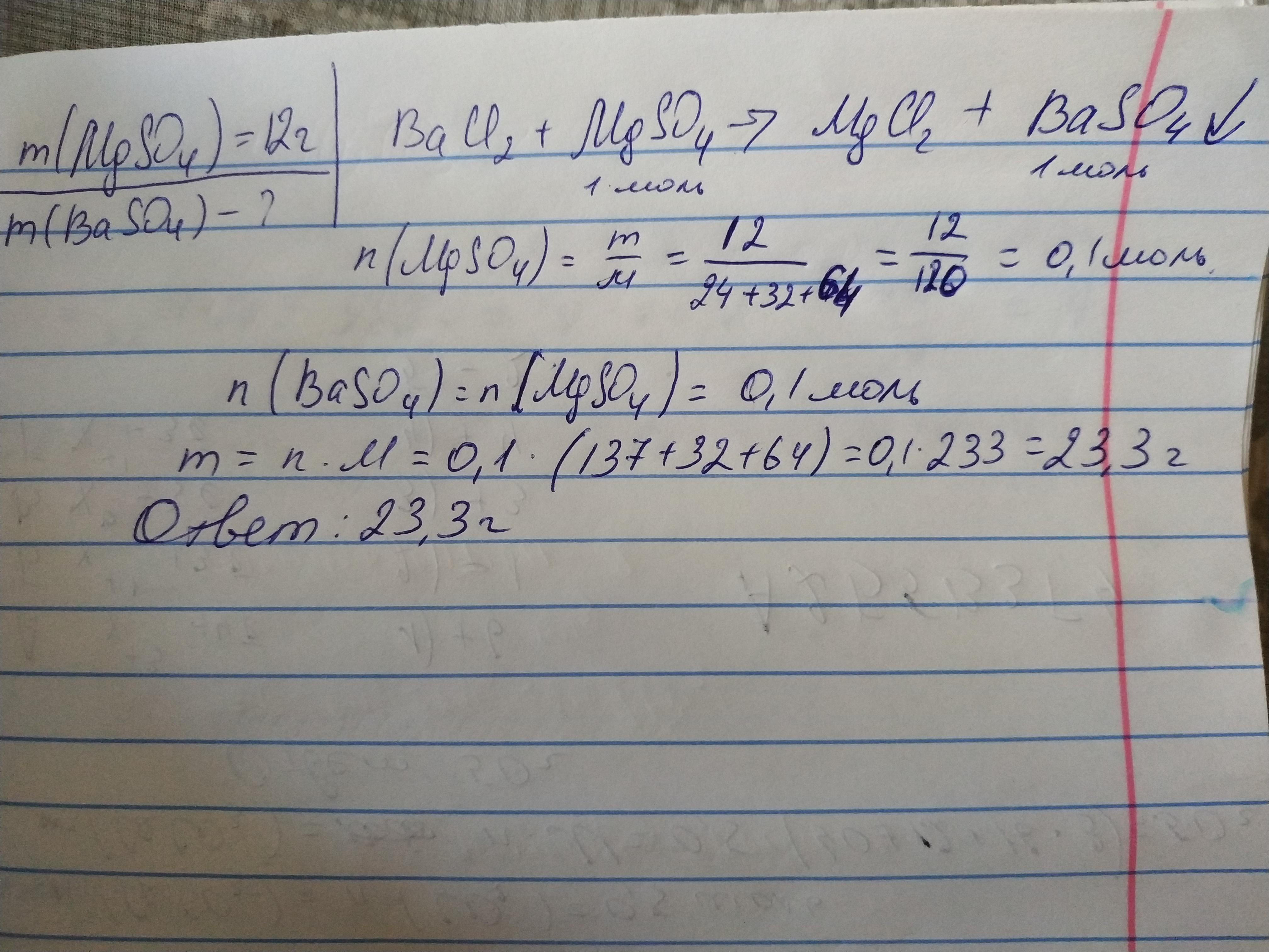 содержащего 12 г сульфата магния с избытком хлорида бария.