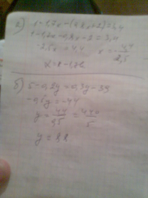 а) 1 - 1,7х - (0,8х + 2)= 3,4