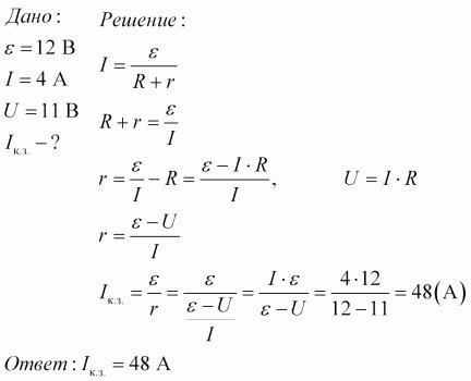 Батарея акумуляторів має ЕРС 12 В. Сила струму в колі дорівнює 4 А,