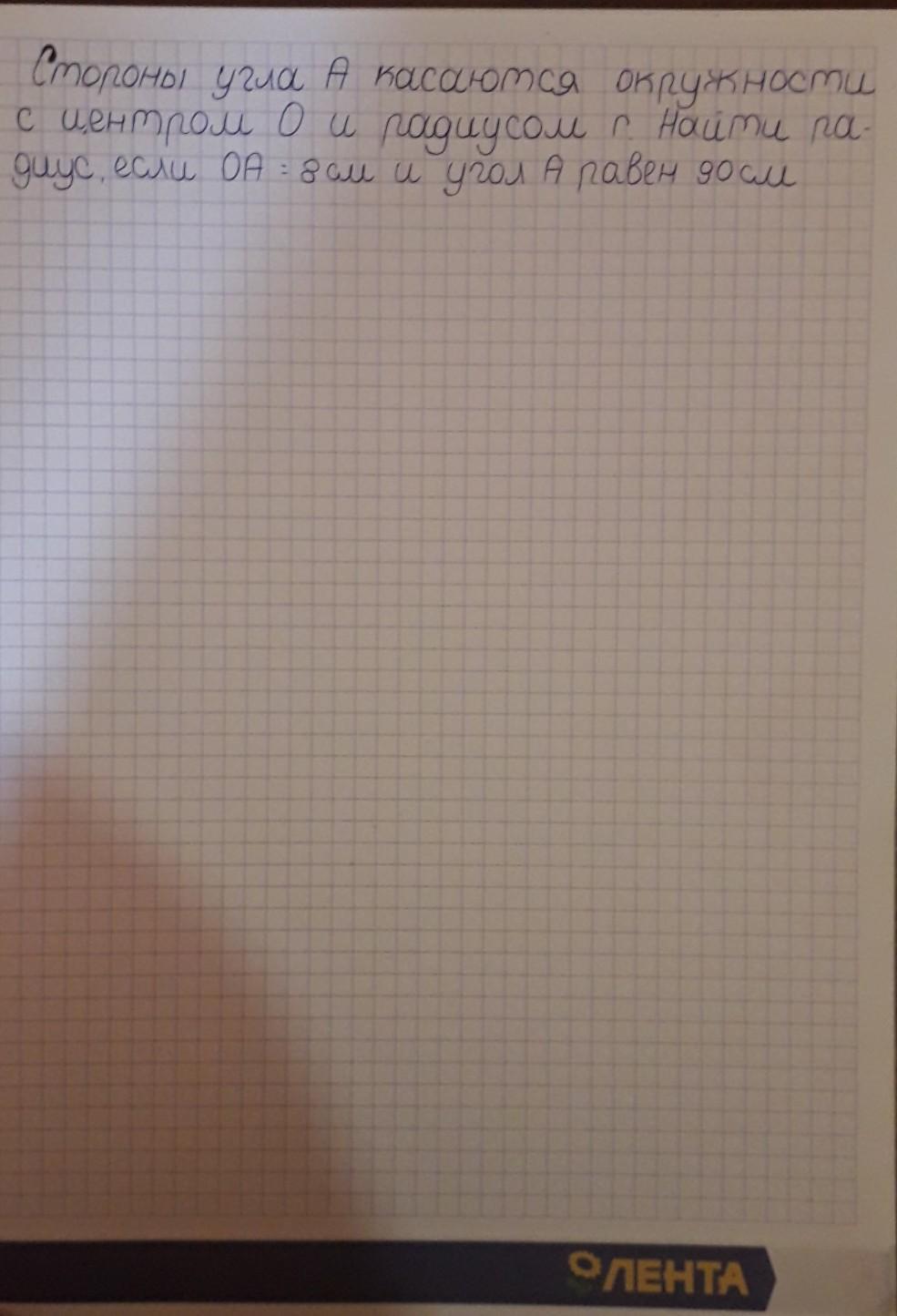Объяснение: Пусть стороны угла А касаются окружности в точках M и N. Тогда радиус ОМ⊥АМ,ОN⊥AN, т.к касательная перпендикулярна радиусу, проведённому в точку касания. Рассмотрим ΔАОМ, он прямоугольный, , тк. ∠А=90°, то ∠ОАМ=45° по свойству касательных, проведённых из одной точки к окружности; значит ОM/OA = Sin45°, ⇒OM= 8·Sin45°=8· √2/2 =4√2