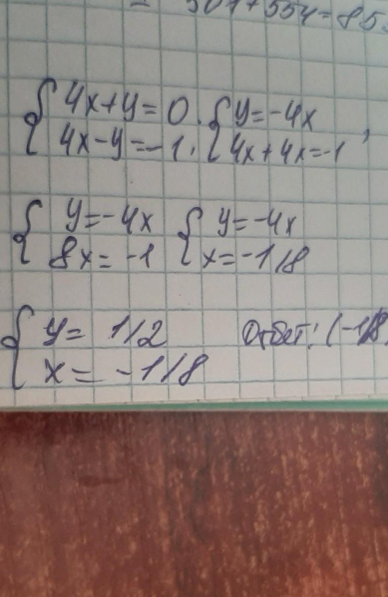 укажите пару чисел которая является решением системы уравнений 4х+у=0 4х-у=-1