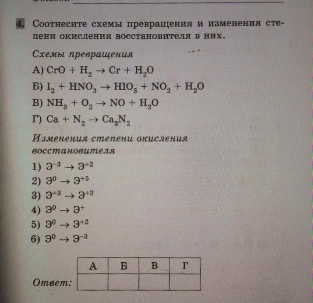 Соотнесите схемы превращения и изменения степени окисления восстановителя в них