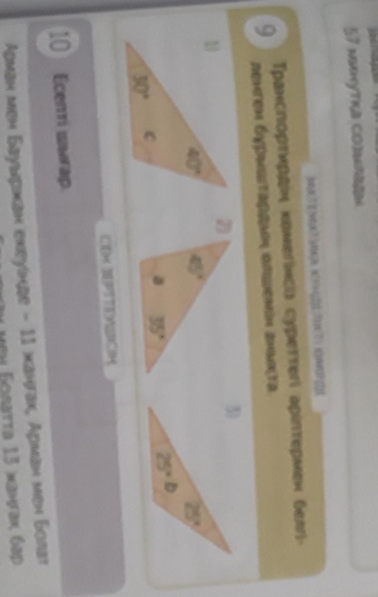 короче общее количество градусов это 180 ВСЕГДА , числа которые есть складываем и (180- ЧИСЛО) так находим у каждой фигуры ответы выше