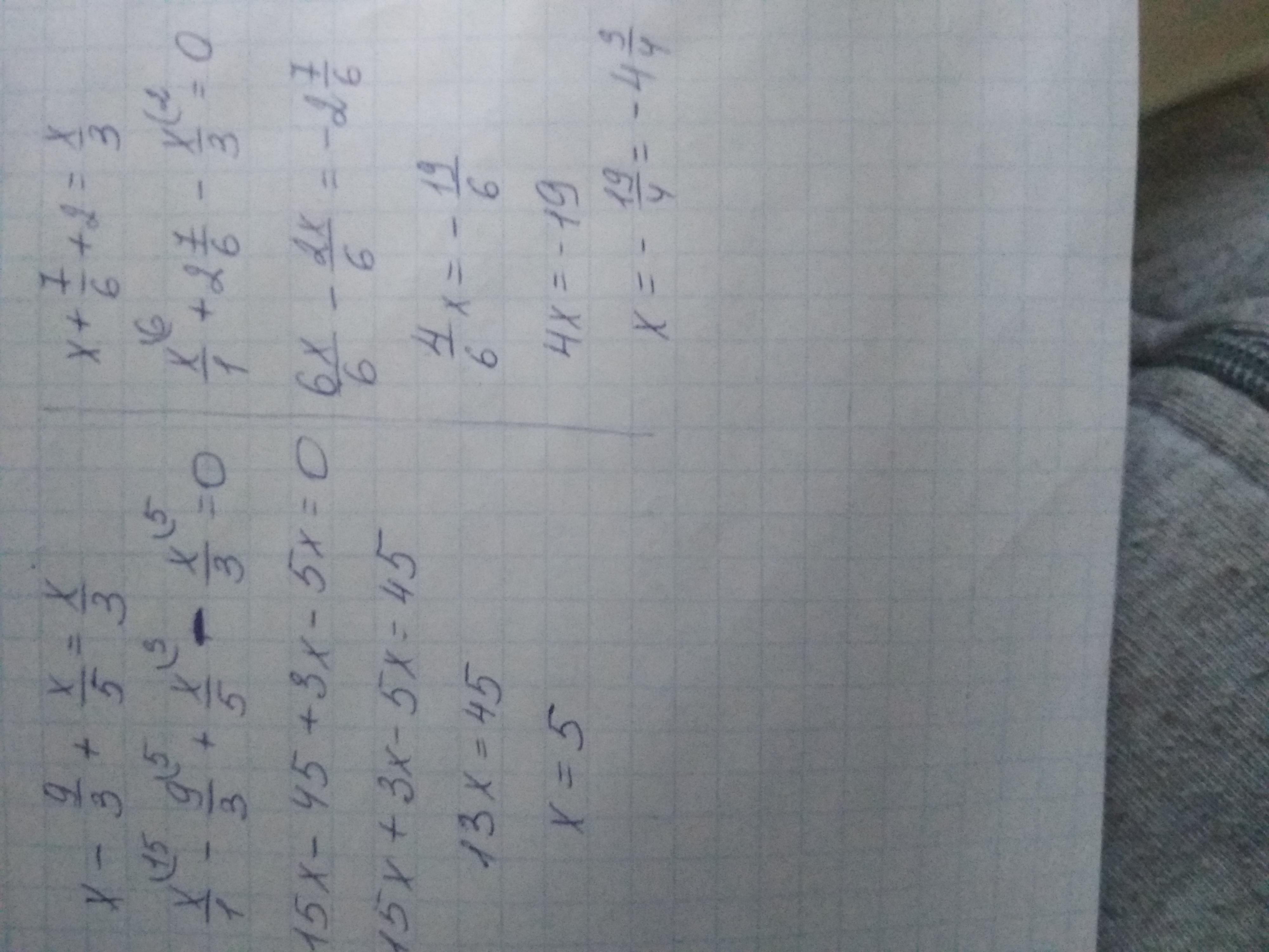 Решите уравнения: (1) x-9/3 + x/5 = x/3 (2) x+7/6 + 2 = x/3