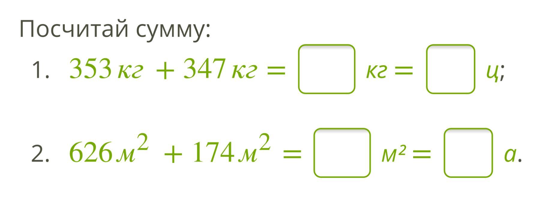 1. 353 кг + 347 кг= 700 кг= 7 ц