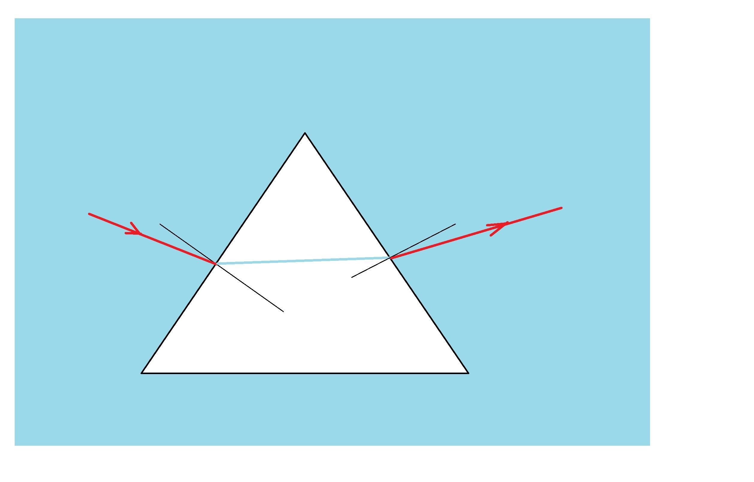 Пожалуйста, помогите! Изобразите дальнкйший ход луча после его преломления в воздушной призме, находящейся в воде. Заранее огромное спасибо!