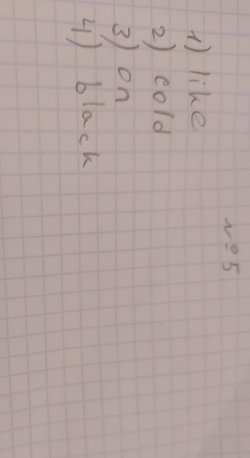 5.1 Like, 2.cold, 3. on, 4. black.