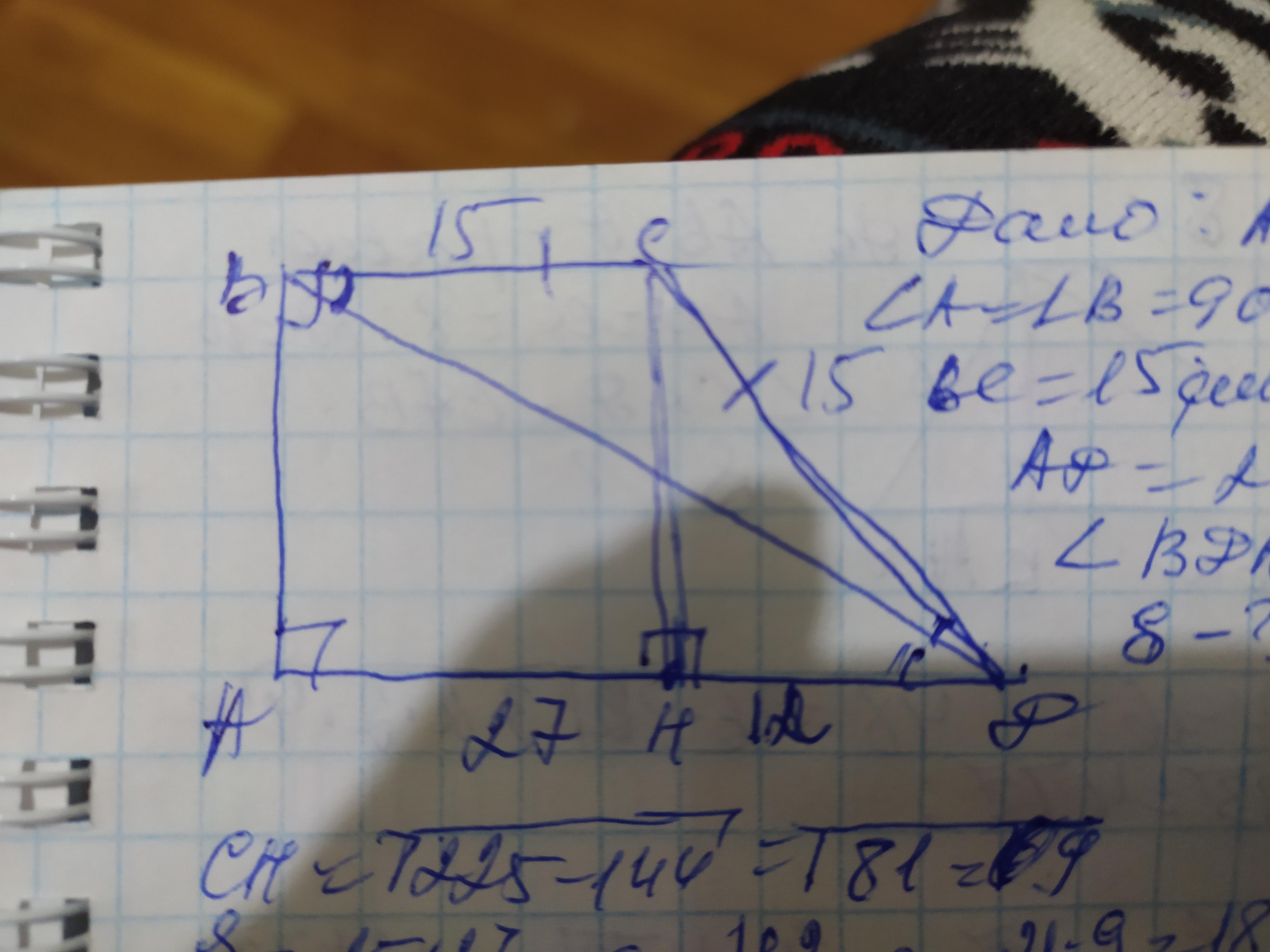 АН = КД=(16-8)÷2=8÷2=4см. Рассмотрим ∆АВН. Он прямоугольный и нам уже известны 2 его стороны: