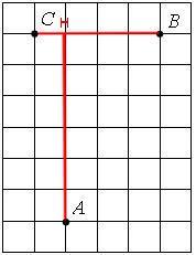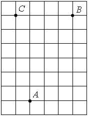 На клетчатой бумаге с размером клетки 14 см x 14 см отмечены точки A, B и C.