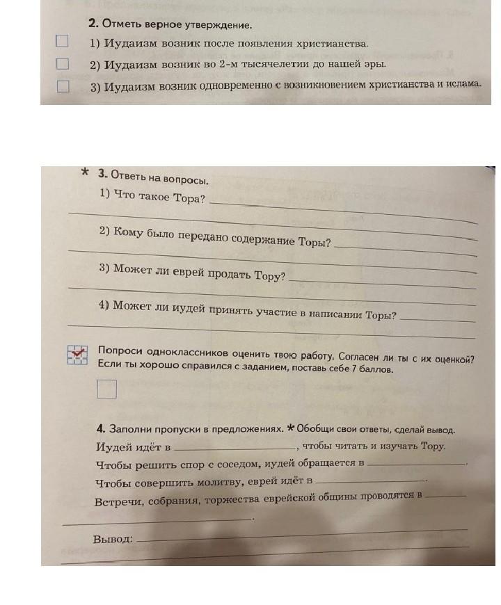 1)Тора - первая часть Библии, так называемое «Пятикнижие Моисеево» — свиток с текстом Пятикнижия, хранимый в синагоге как предмет религиозного культа иудеев; в широком смысле, совокупность иудейского традиционного религиозного закона.