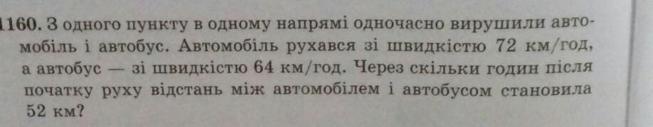 а автобус зі швидкістю 64 км/год. Через скільки годин після