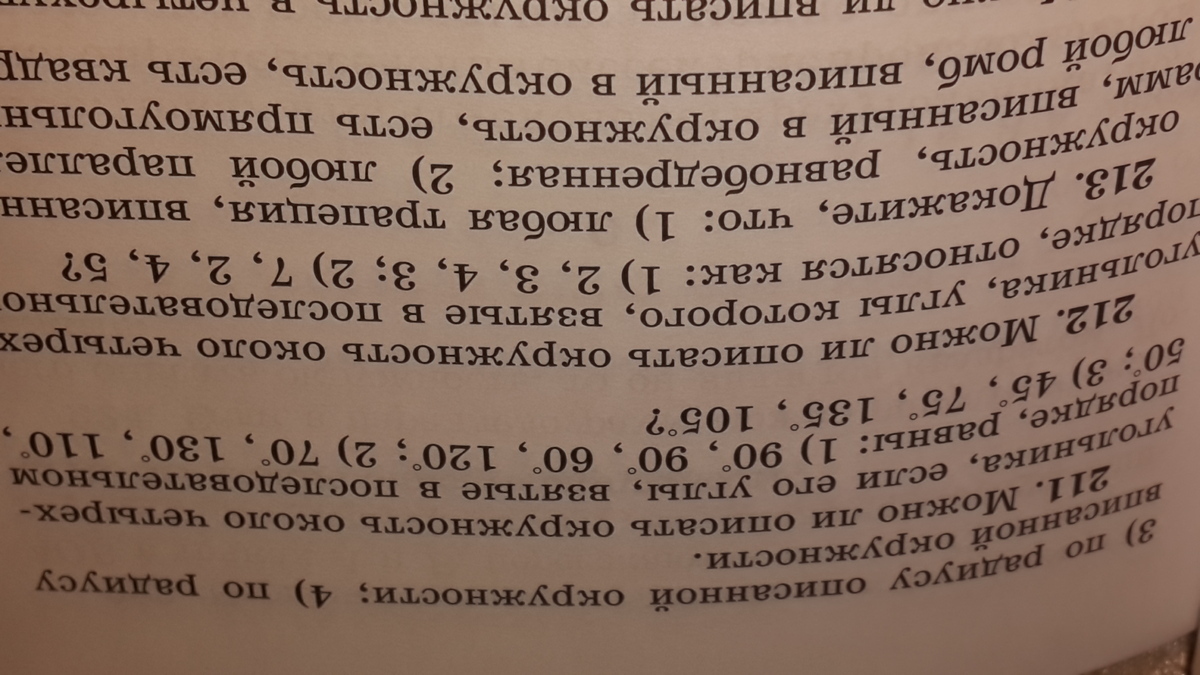 окружность можно описать около четырехугольника, если сумма его противоположных углов = 180 градусов... т.е. суммы противоположных углов равны...