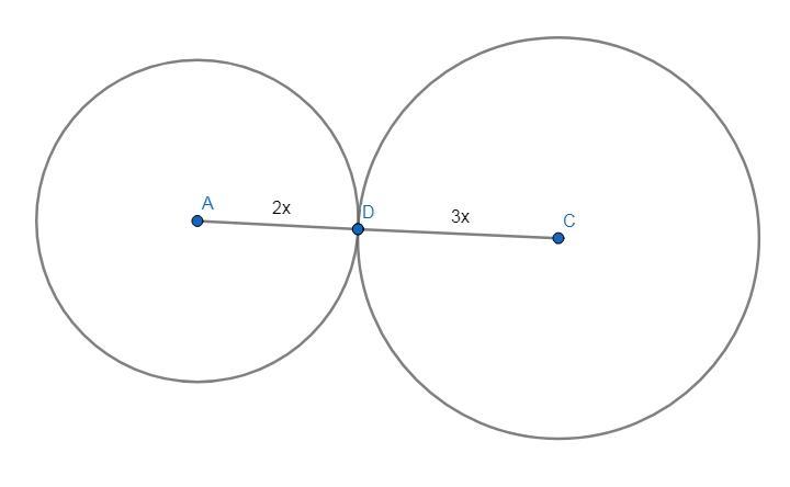 Две окружности имеют внешнее касание. Расстояние между их центрами равно 20см. Найдите радиусы этих окружностей, если они относятся как 2:3.
