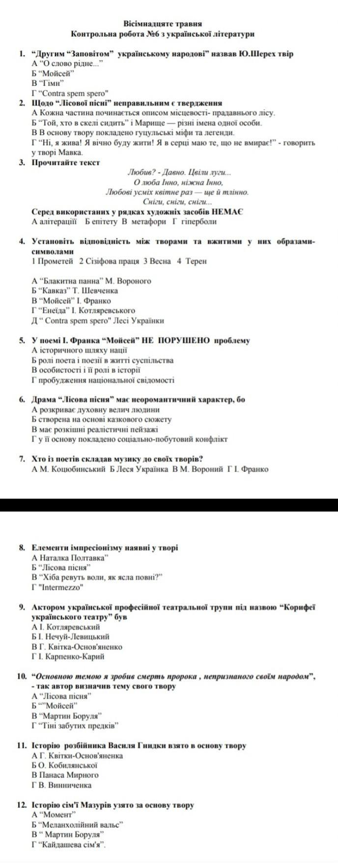 Украинская литература, пожалуйста ответьте на вопросы правильно, не от фонаря, даю последние 45 баллов