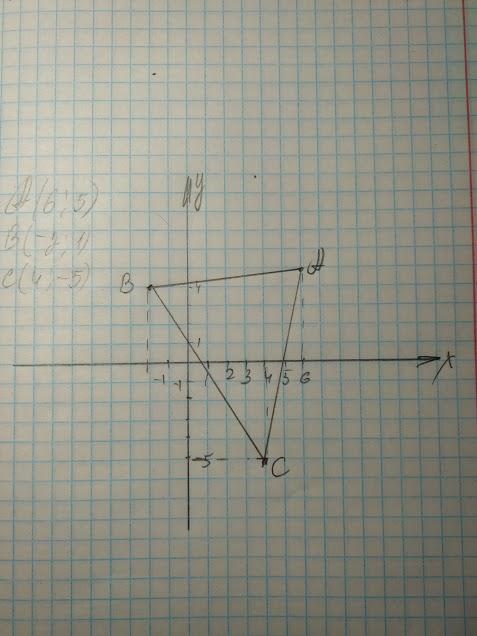 Постройте на координатной плоскости треугольник АВС с вершинами А(6 ; 5); В(- 2;1) и С(4;- 5