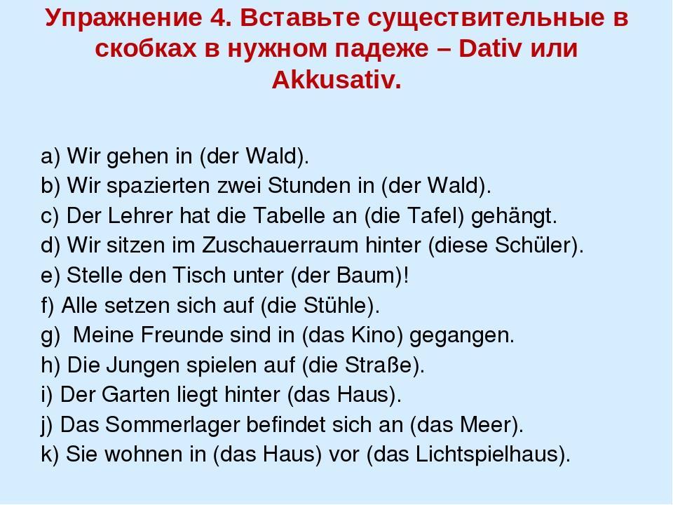 k) Sie wohnen in dem Haus vor dem Lichtspielhaus.