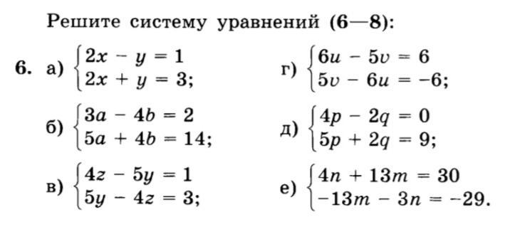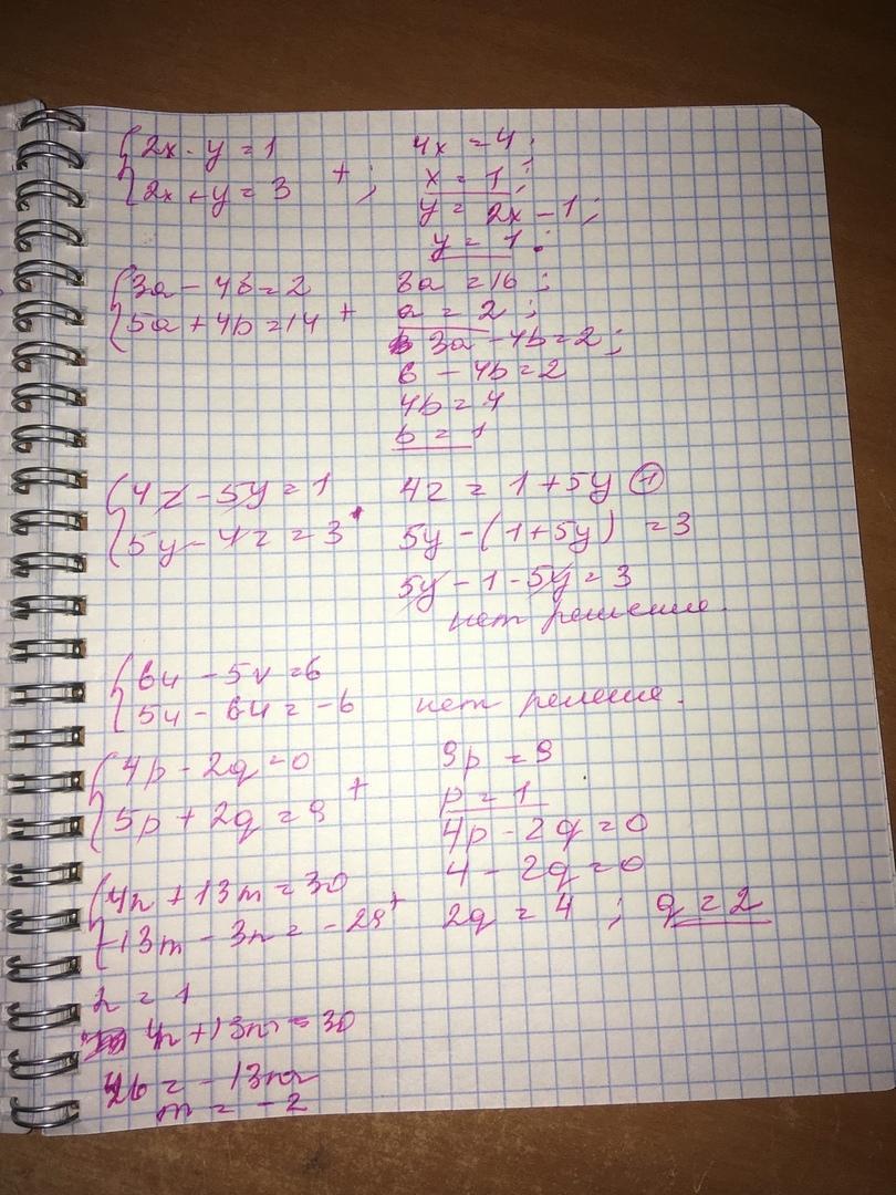 Ответ: a)x=1 y=1, б)а=2, b=1, в) г) нет решения, д)p=1 q=2, е)n=1, m=-2