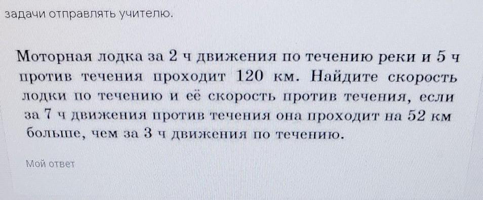 3x-7y=-52 /*2 6x-14y=-104 29y=464 y=464:29 y=16км/ч скорость против течения
