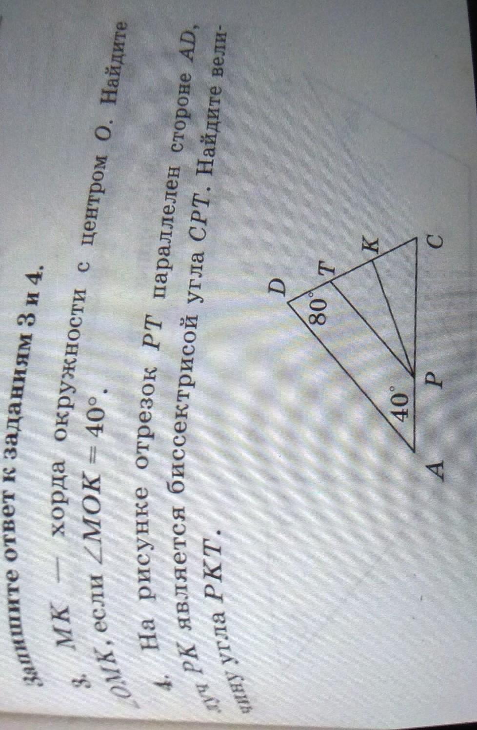 2. AD и PT параллельны, значит, угол DAC равен углу TPC. из угла P проходит биссектриса к противоположной стороне. известно, что биссектриса делит пополам угол, из которого исходит. тогда, TPK=KPC=20°