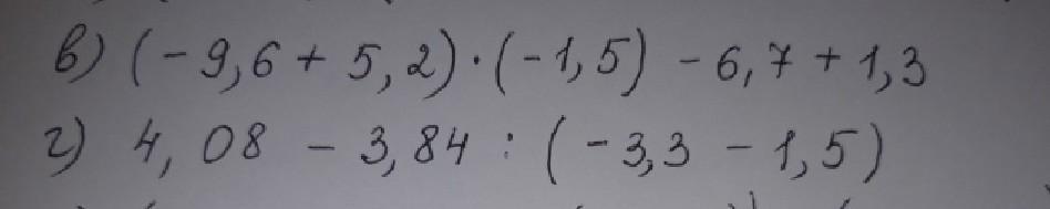 (-9,6+5,2)×(1,5)-6,7+1,3