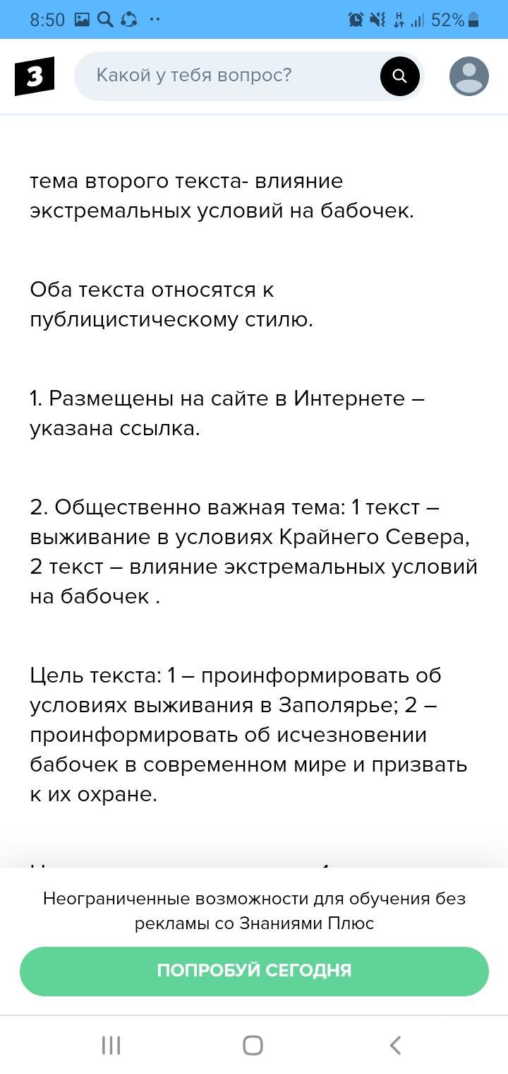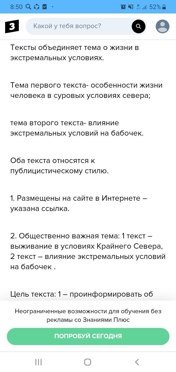 Сравните два текста, определив сходства и различия по указанным признакам: