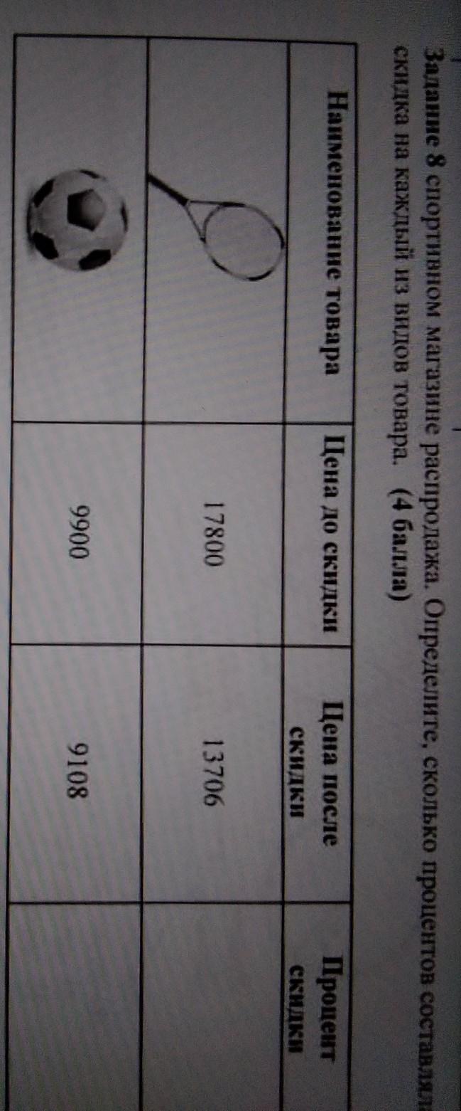 спортивном магазине распродажа Определите сколько процентов составляла скидка на каждой из видов товаров