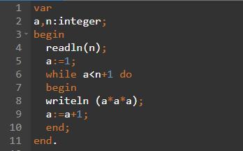 «4»:Ввести натуральное число N и вывести кубы всех чисел от 1 до этого числа.