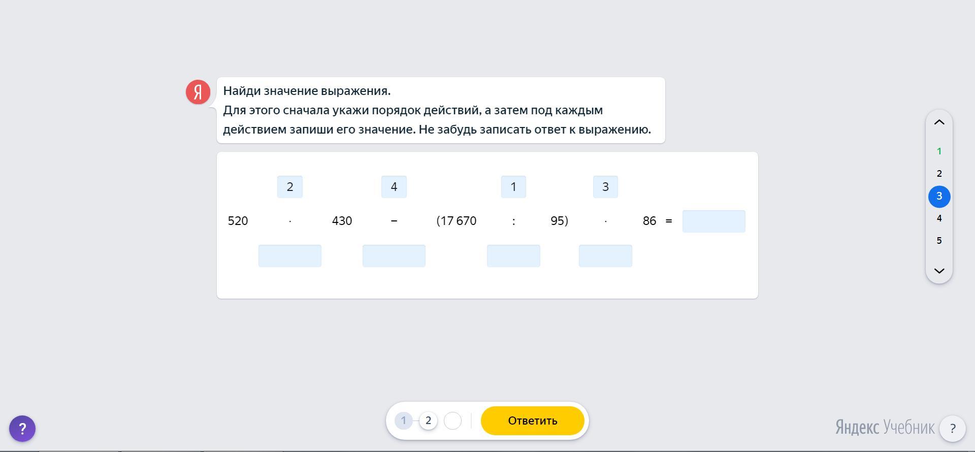 Для этого сначала укажи порядок действий, а затем под каждым действием запиши его значение. Не забудь записать ответ к выражению.