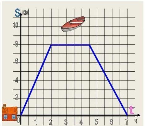 3. На рисунке изображён график движения рыбака от дома до реки. Ответьте на вопросы по графику: