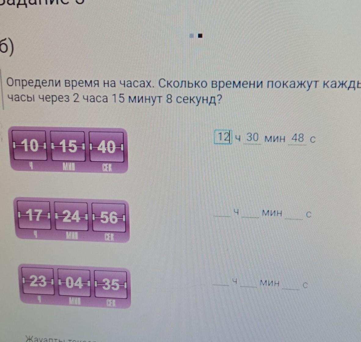 определить время на часах. сколько времени показывают каждые часы через 2 часа 15 минут 8 секунд? помогите пожалуйста