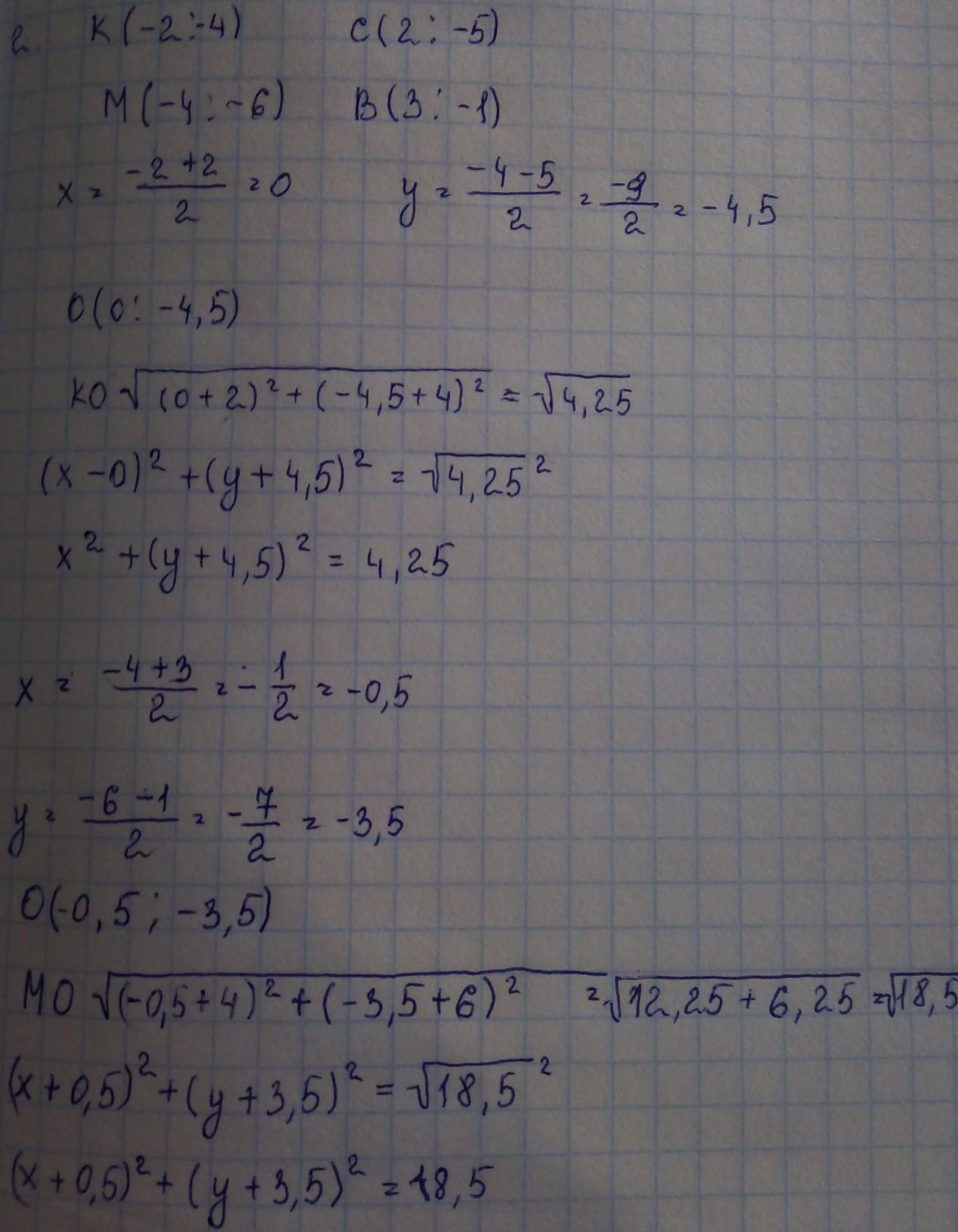 даны координаты вершин четырёхугольника КМСВ: К(-2;-4); М( -4; -6); С( 2;-5); В( 3;-1). Написать уравнения прямых КС и МВ.