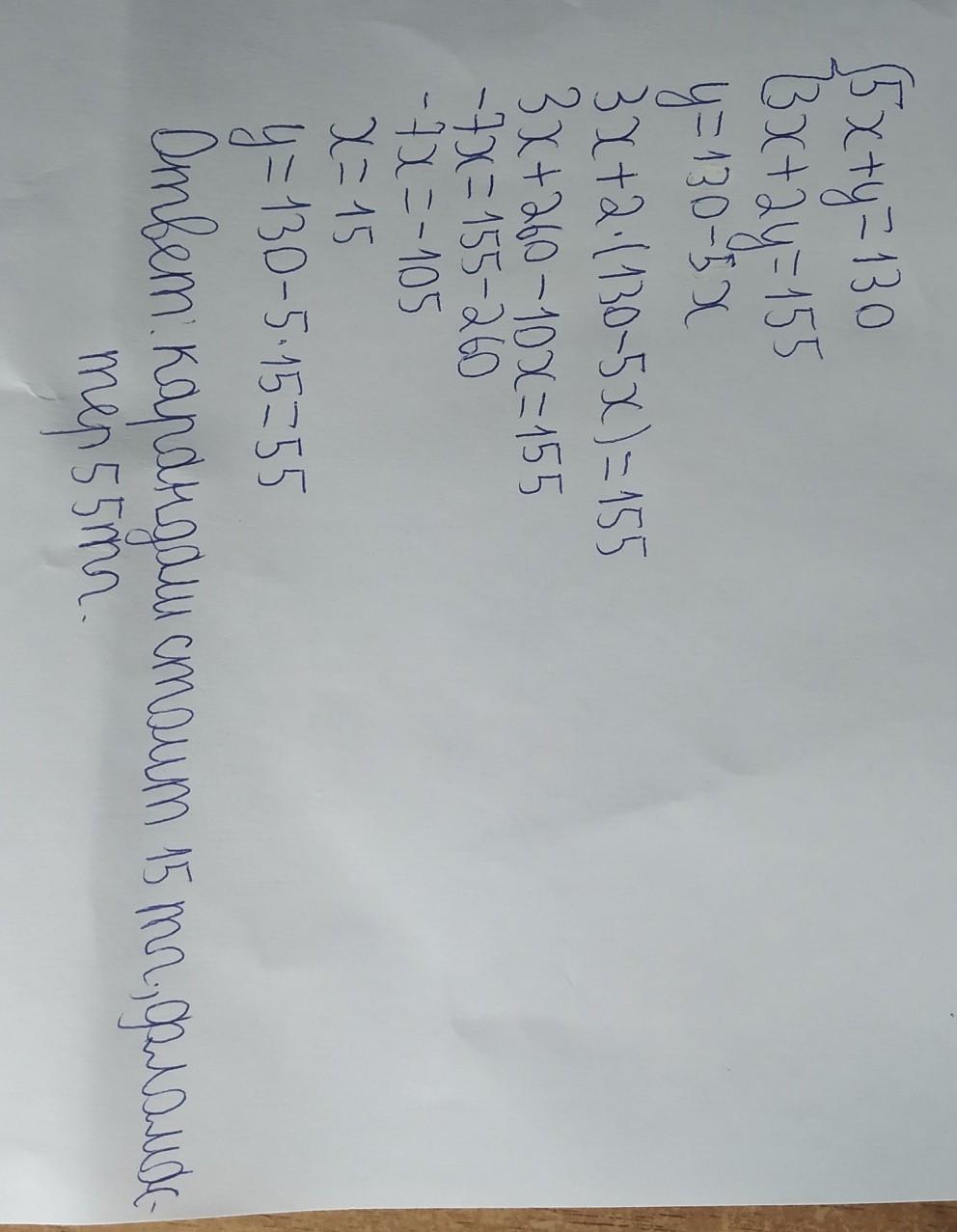 5 карандашей и один фломастер стоят 130 тенге, а 3 карандаша и два фломастера стоят 155 тенге. Сколько стоит карандаш? Сколько стоит фломастер?