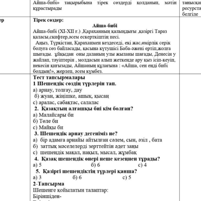 1 А 2 с 3 с 4 б 5 а 2 1) тапкырлык 2) зеректiк