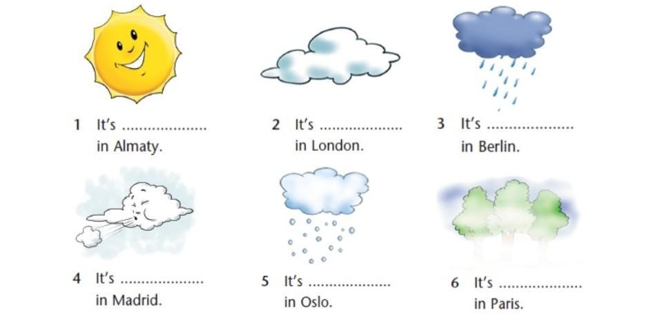 Task 3. What’s the weather like in these cities? Look and write. (3 marks)