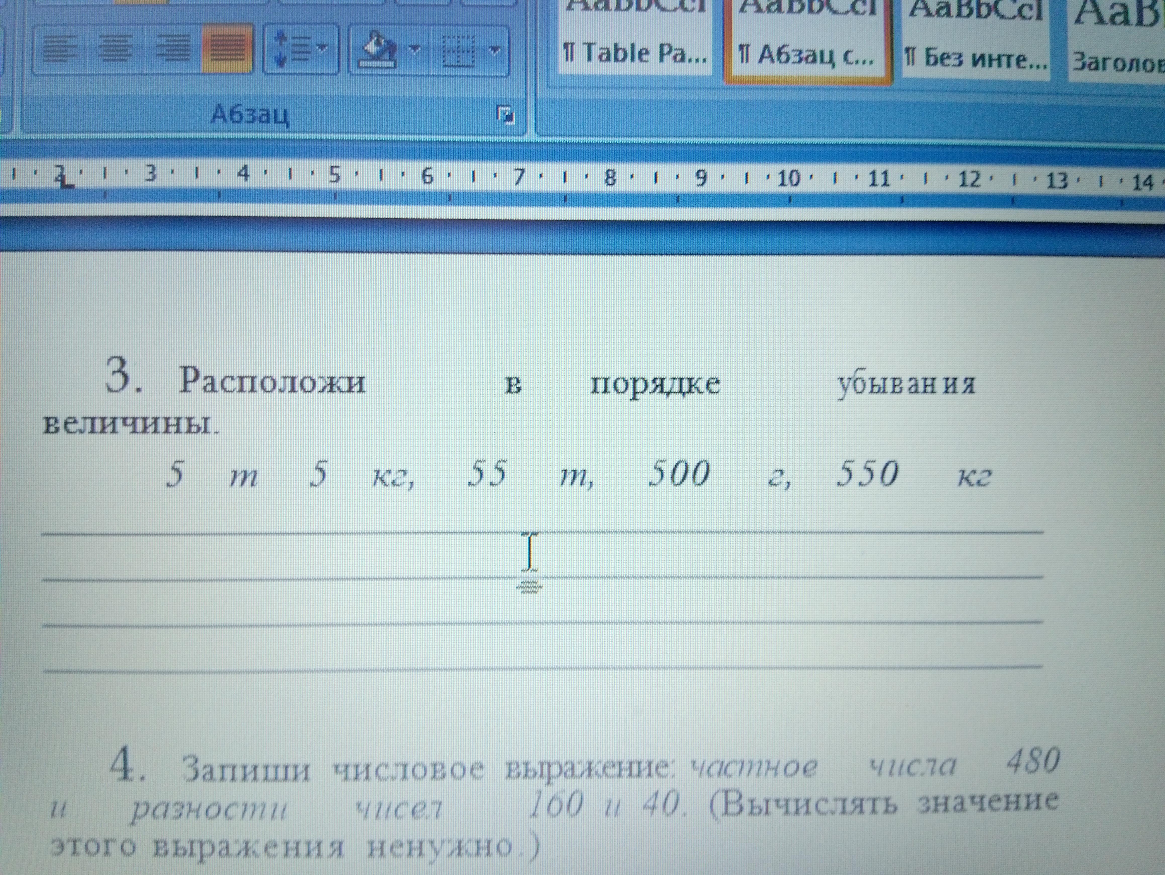 Ну и ответ: 55 т - 5 т - 550 кг - 5 кг - 500 г.