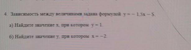 Найдите зависимость между величинами задана формулой Y = - 1,5x - 5 a)Найдите значения x при которым y=1 b) Найдите значение y при котором x=-2