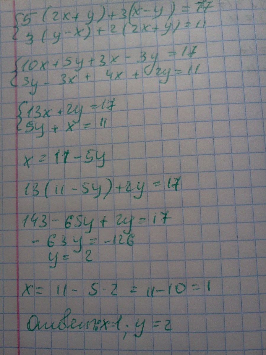 3(y-x)+2(2x+y)=11 решите сичстему уравнений пожалуйста..срочно,заранее огромное спасибо!
