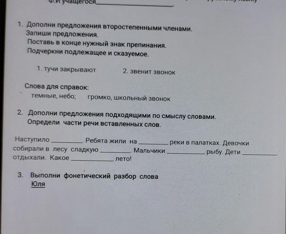 определите части речи вставленных слов