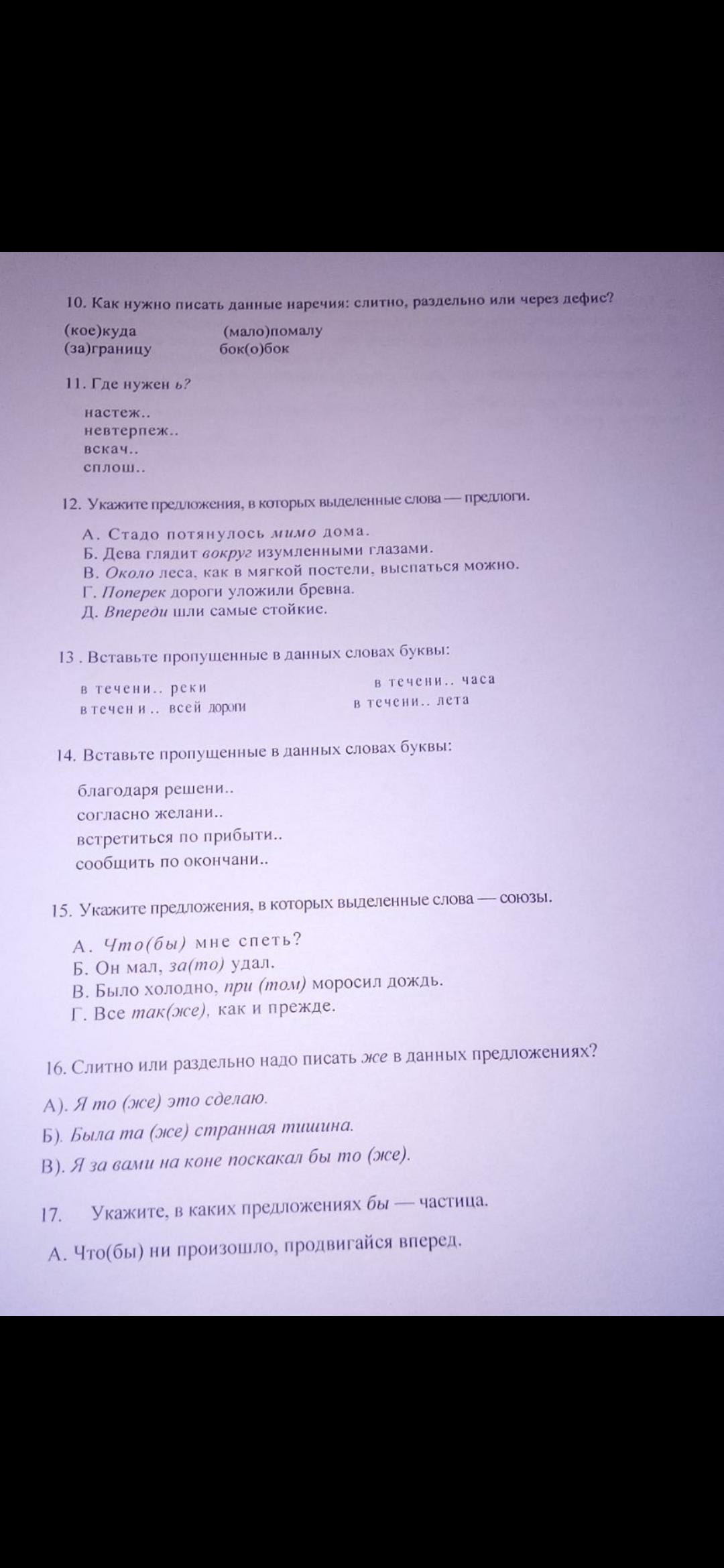 10) через дефис 11) сплошь 12)В 13)в течении реки,в течение всей дороги,в течении часа,в течение лета 14)ю,ю,ю,ю 15)Б,Г 16)слитно 17) а