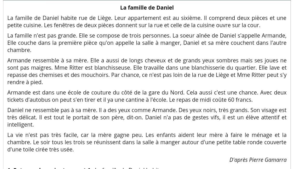 La famille de Daniel habite rue de Liège dans l'appartement de deux pièces au 6ème étages