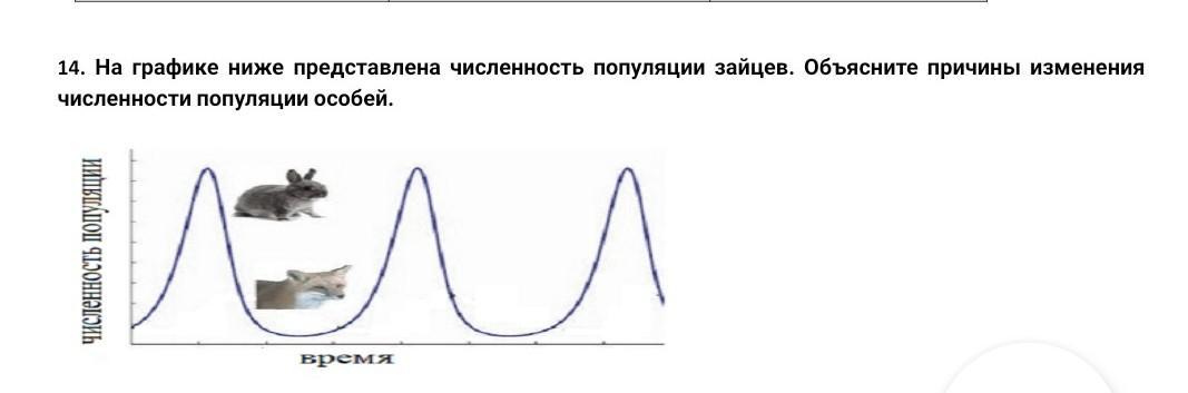 На графике ниже представлена численность популяции зайцев. Объясните причины изменения численности популяции особей.