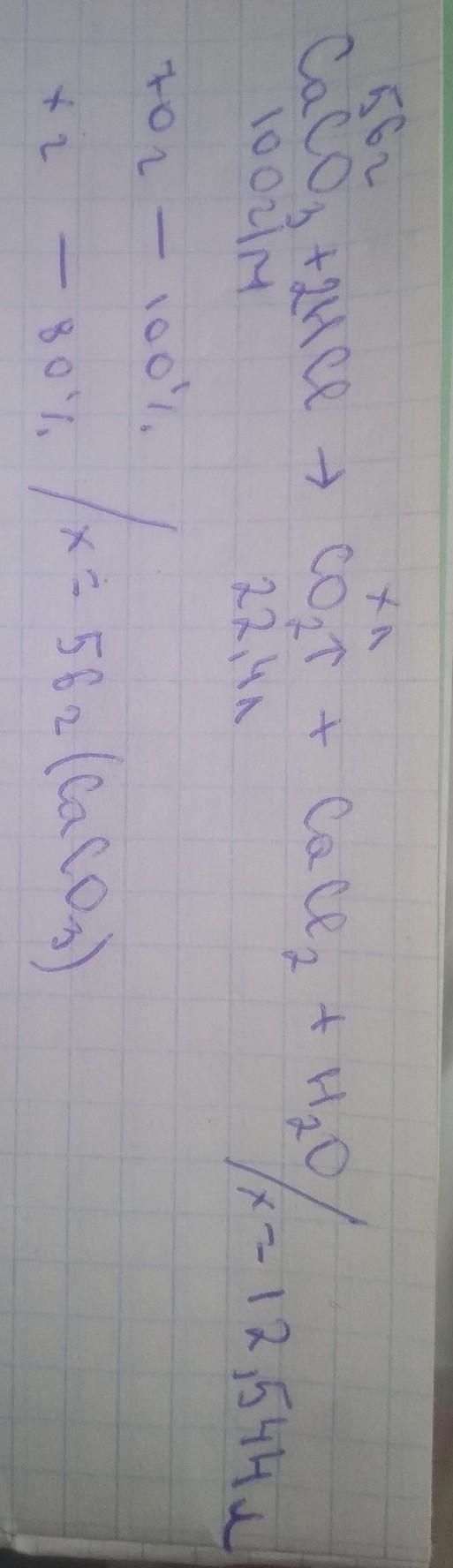 Какой объем оксида углерода (IV) образуется при взаимодействии 70г карбоната кальция, содержащего 20% примесей, с соляной кислотой?