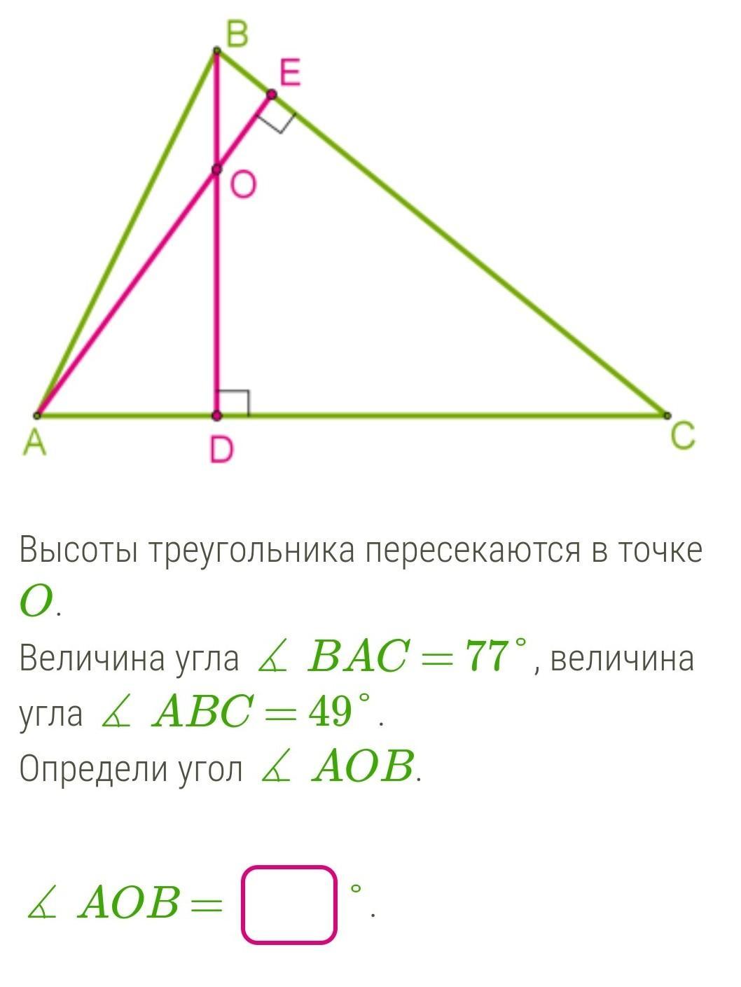 Объяснение: триугольник AEB- прямоугольный, поэтому кут ВАЕ=90-49=51; триугольник АDB- прямоугольный, поэтому кут АВD=90-77=13;