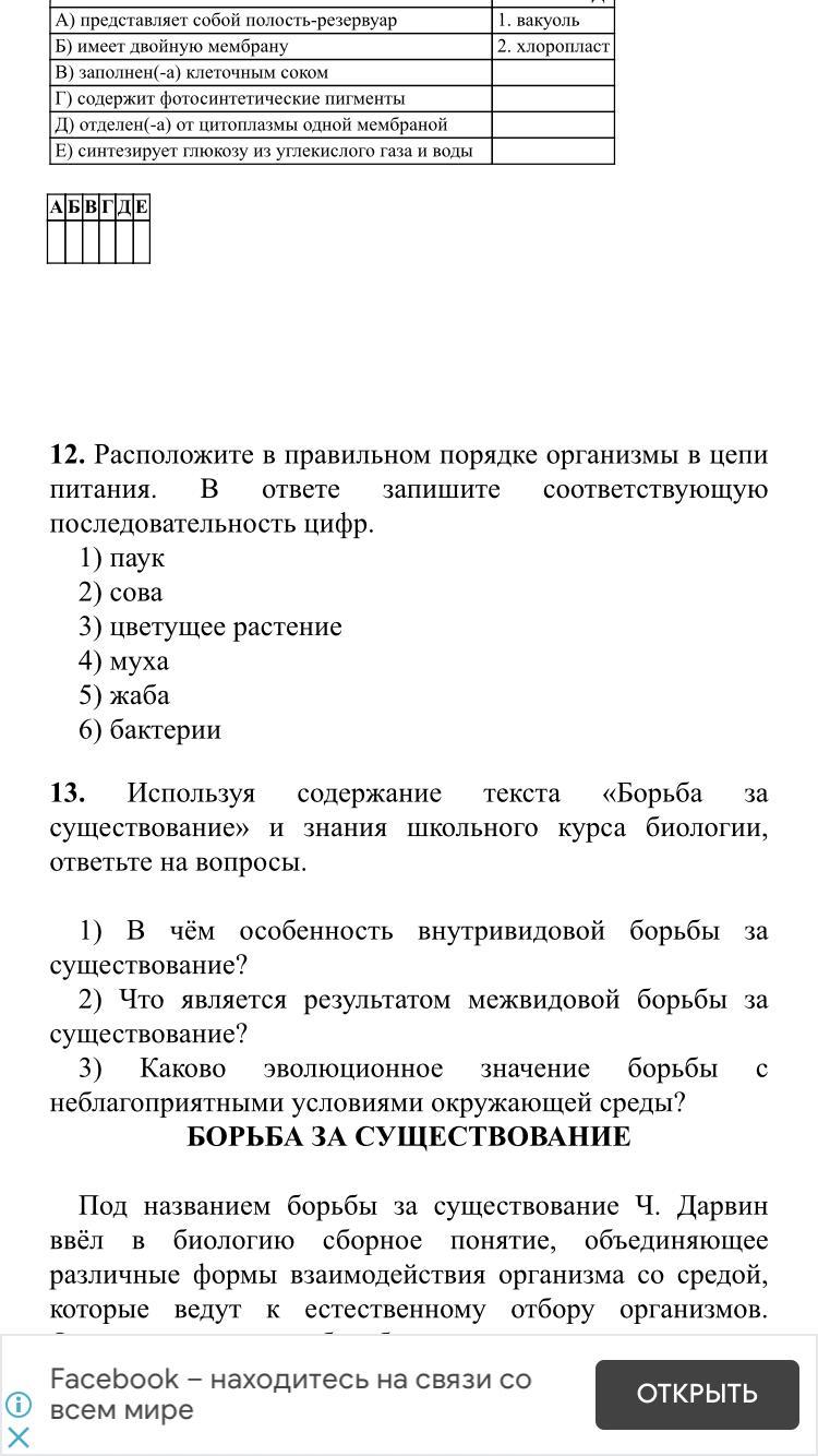 Ответ:цветущие растения;бактерии;муха;паук;жаба;сова
