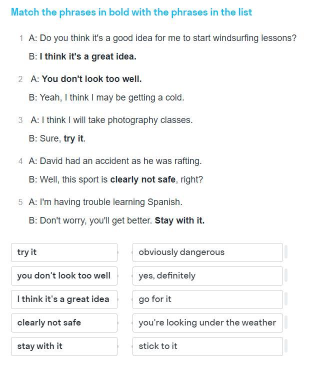 1 A: Do you think it's a good idea for me to start windsurfing lessons?