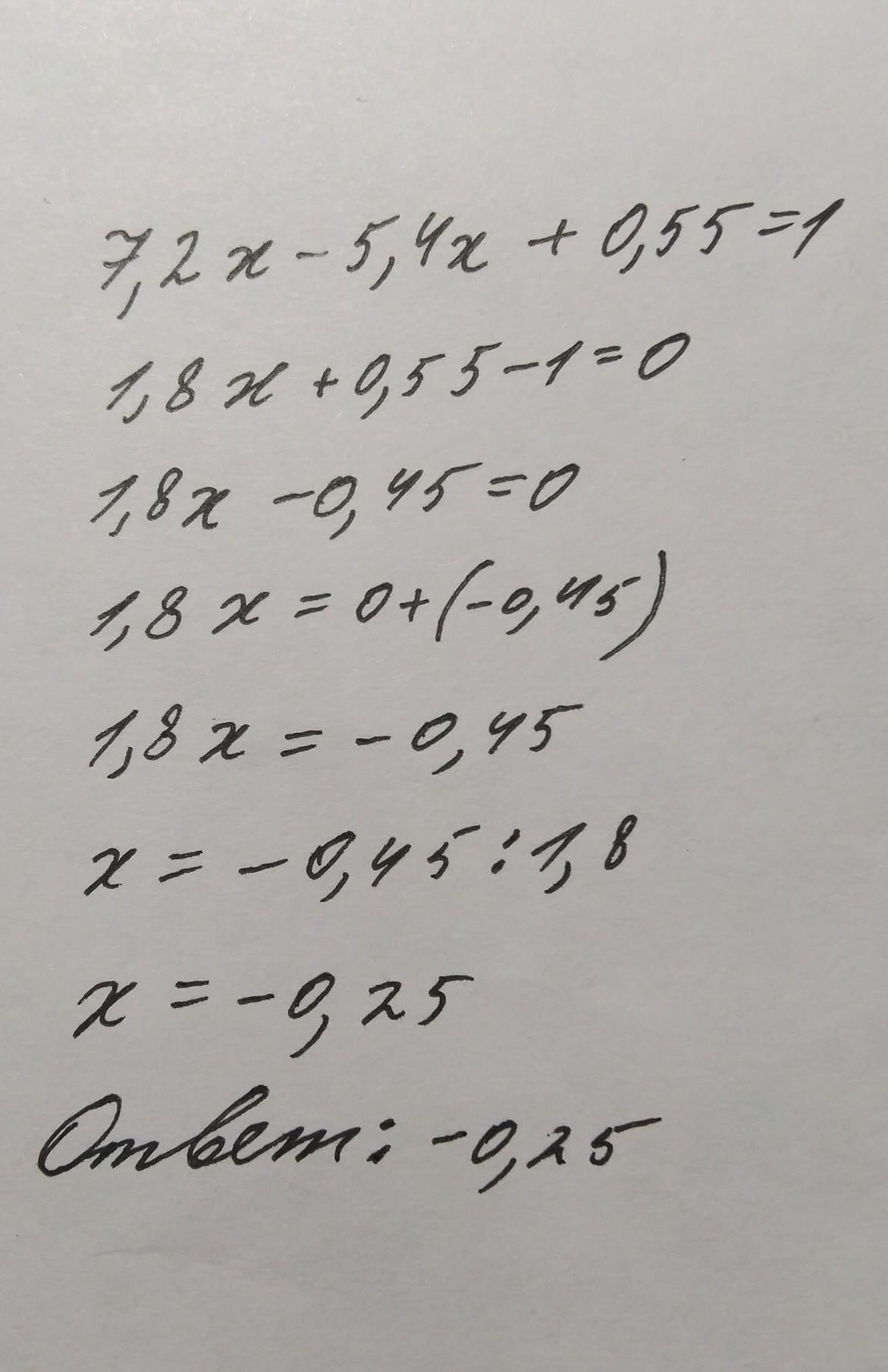 Простите, немного ошибся, в итоге получается 1,8х=1-0,55 и в ответе просто 0,25, без минуса